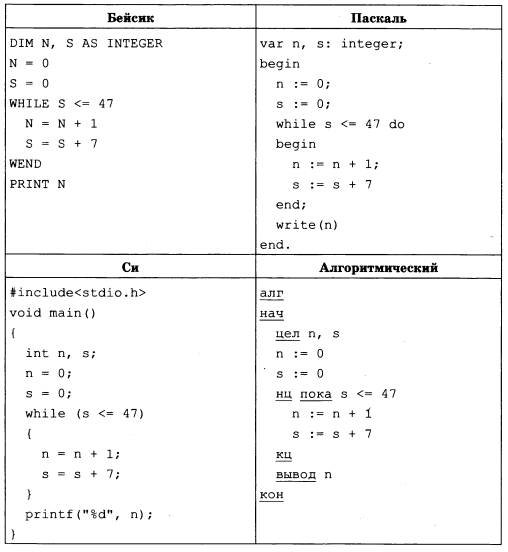 составим таблицу изменения значений переменной в ходе программы Ответ: 7