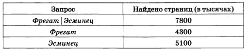 В таблице приведены запросы и количество найденных по ним страниц некоторого сегмента сети Интернет.