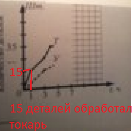 На рисунке изображен график работы токаря (Т) и его ученика (у) (количество деталей в штуках , обрабатываемых за определенное время ). Определите по рисунку , на сколько деталей больше обработал токарь первый час работы, чем его ученик