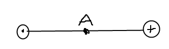 На рисунке изображены два проводника с токами, текущими в противоположных направлениях. Если величина вектора магнитной индукции, создаваемой каждой из проводников в точке А, равна В, то чему будет равна магнитная индукция результирующего магнитного поля в точке А.