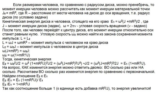 На краю свободно вращающегося, достаточно большого горизонтального диска, имеющего радиус R и момент инерции I, стоит человек массы m. Диск совершает v об/сек. как изменится энергия системы, если человек перейдет от края диска к центру?Размерами человека по сравнению с радиусом диска можно пренебречь.