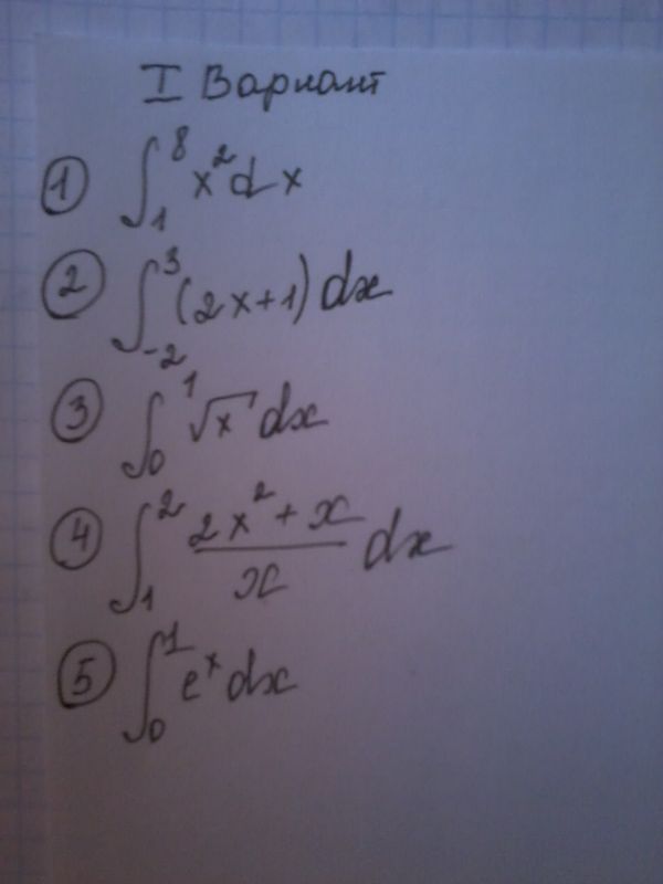 Это не уравнения, это элементарные интегралы. 1) (с первой фотки) ∫(4x^2-(1/3)x+3)dx = ∫4x^2dx - ∫(1/3)xdx + ∫3dx = 4x^3/3 - x^2/6 + 3x + C 1) (со второй фотки) ∫ x^2dx = x^3/3 | от 1 до 8 = 8^3/3 - 1/3 = 511/3 Все интегралы табличные, прикрепляю таблицу интегралов
