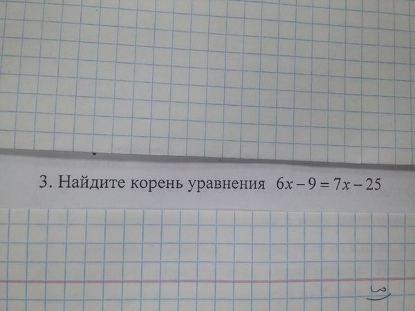 Найдите корень уравнения 6x-9=7x-25...