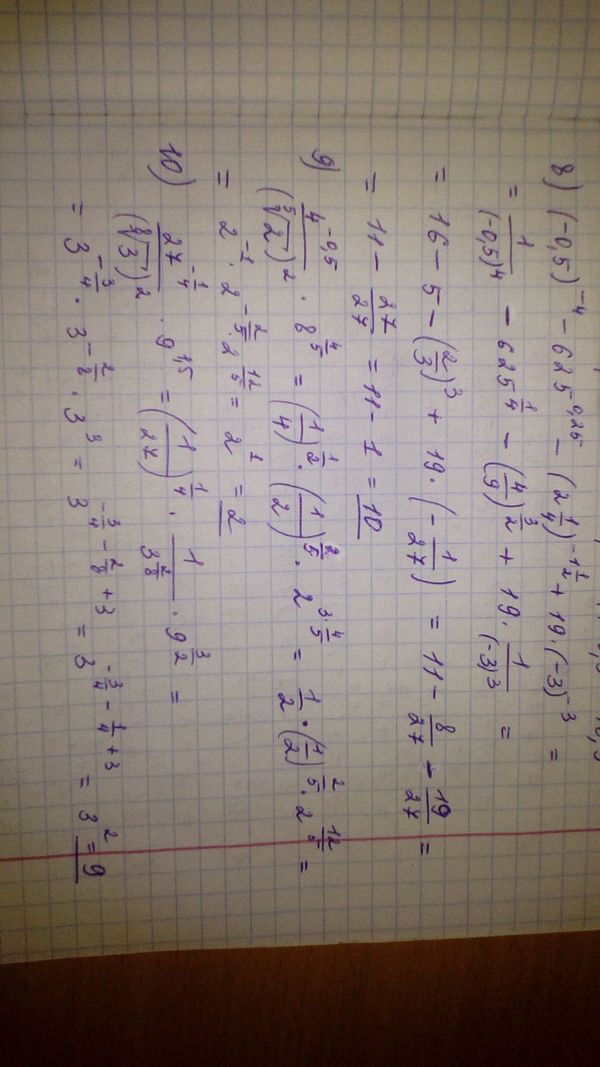 Вычислите 9^(3/2)+27^(2/3)-(1/16)^(-3/4)...