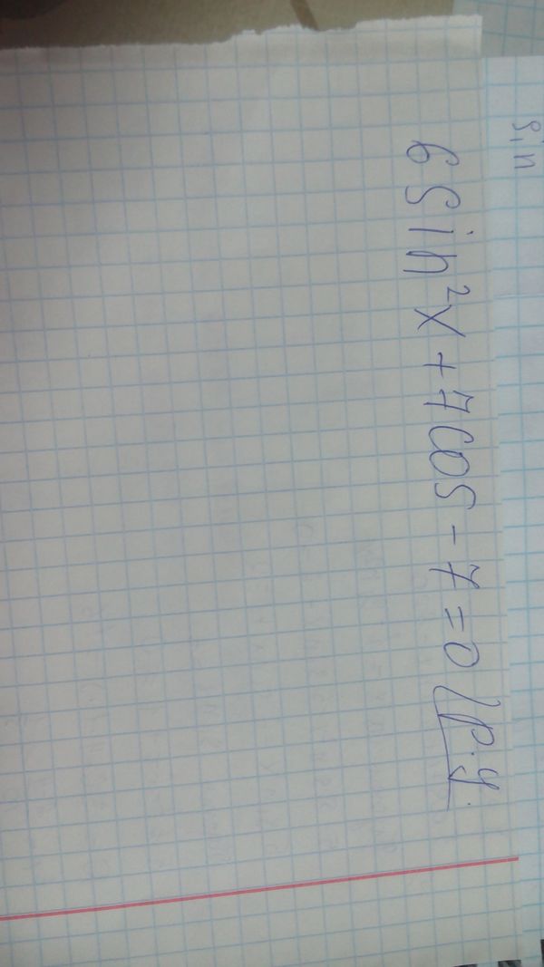 Решить уравнение 6sin2x+7cos-7=0