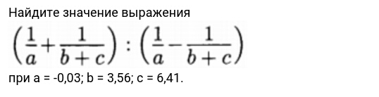 Найдите значение выражения (1/a + 1/(b+c)):(1/a - 1/(b+c))