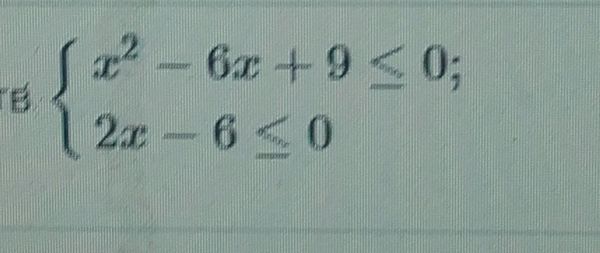 начинать надо с простого, а простое у нас второе. поделим на 2 неравенство слева и справа. получим х-3< =0 прибавим слева и справа 3 получим х< =3. теперь с первым. Можно заметить, что там написан полный квадрат и по формулам сокращенного умножения свернуть его в (x-3)^2< =0, отметим что квадрат числа неотрицателен, а значит что единственным решением системы является x=3.