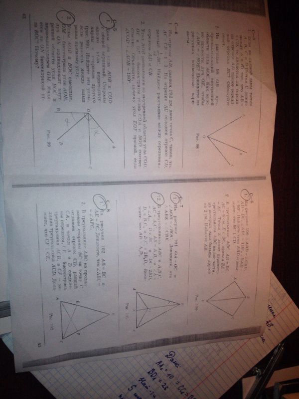 2) Углы AOB и BOC смежные, OM - биссектриса угла AOB...
