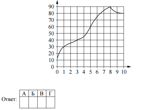 Пользуясь графиком, поставьте в соответствие каждому интервалу времени характеристику процесса разогрева двигателя на этом интервале.