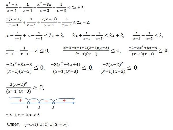 Решите неравенство (x^2-x+1)/(x-1) + (x^2-3x-1)/(x-3) меньше или равно 2x+2