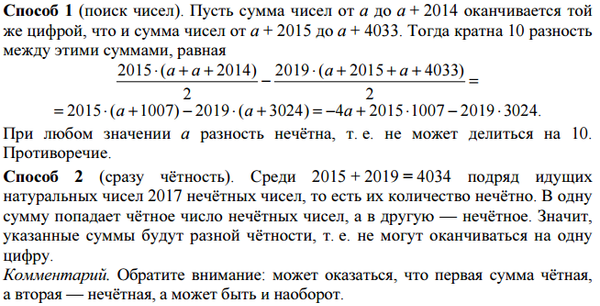 Может ли сумма 2015 последовательных натуральных чисел оканчиваться той же цифрой, что и сумма следующих 2019 чисел?